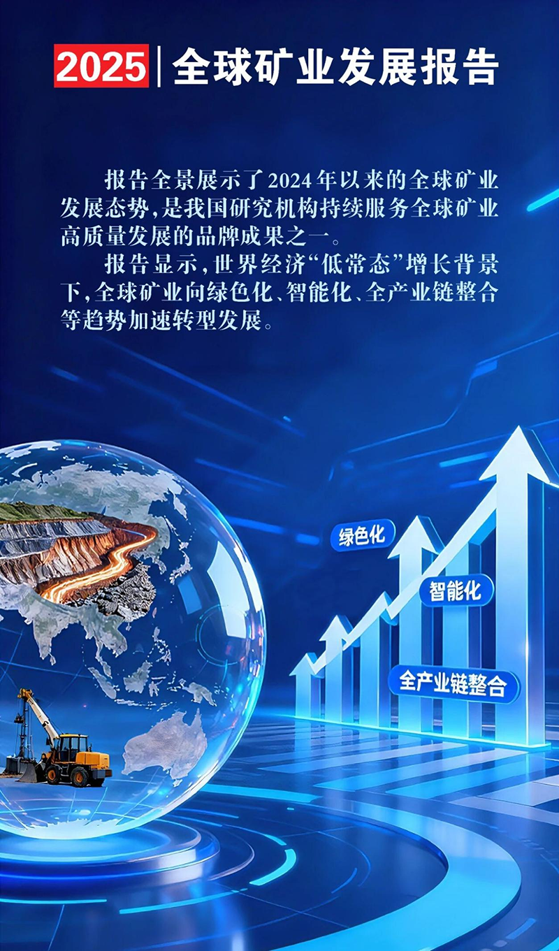 《報(bào)告》顯示,在世界經(jīng)濟(jì)“低常態(tài)”增長背景下,全球礦業(yè)產(chǎn)業(yè)鏈供應(yīng)鏈重構(gòu)加深,供需結(jié)構(gòu)性矛盾不斷加劇,而科技創(chuàng)新、全球治理和綠色可持續(xù)又為礦業(yè)高質(zhì)量發(fā)展注入新動能。全球礦業(yè)向綠色化、智能化、全產(chǎn)業(yè)鏈整合等趨勢加速轉(zhuǎn)型發(fā)展。