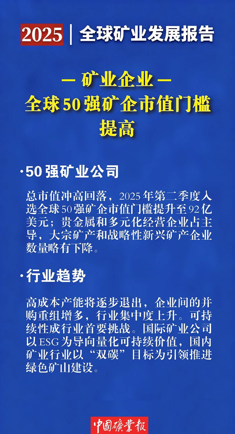 10月24日在2025(第二十七屆)中國國際礦業(yè)大會上中國地質(zhì)調(diào)查局國際礦業(yè)研究中心發(fā)布《全球礦業(yè)發(fā)展報(bào)告2025》